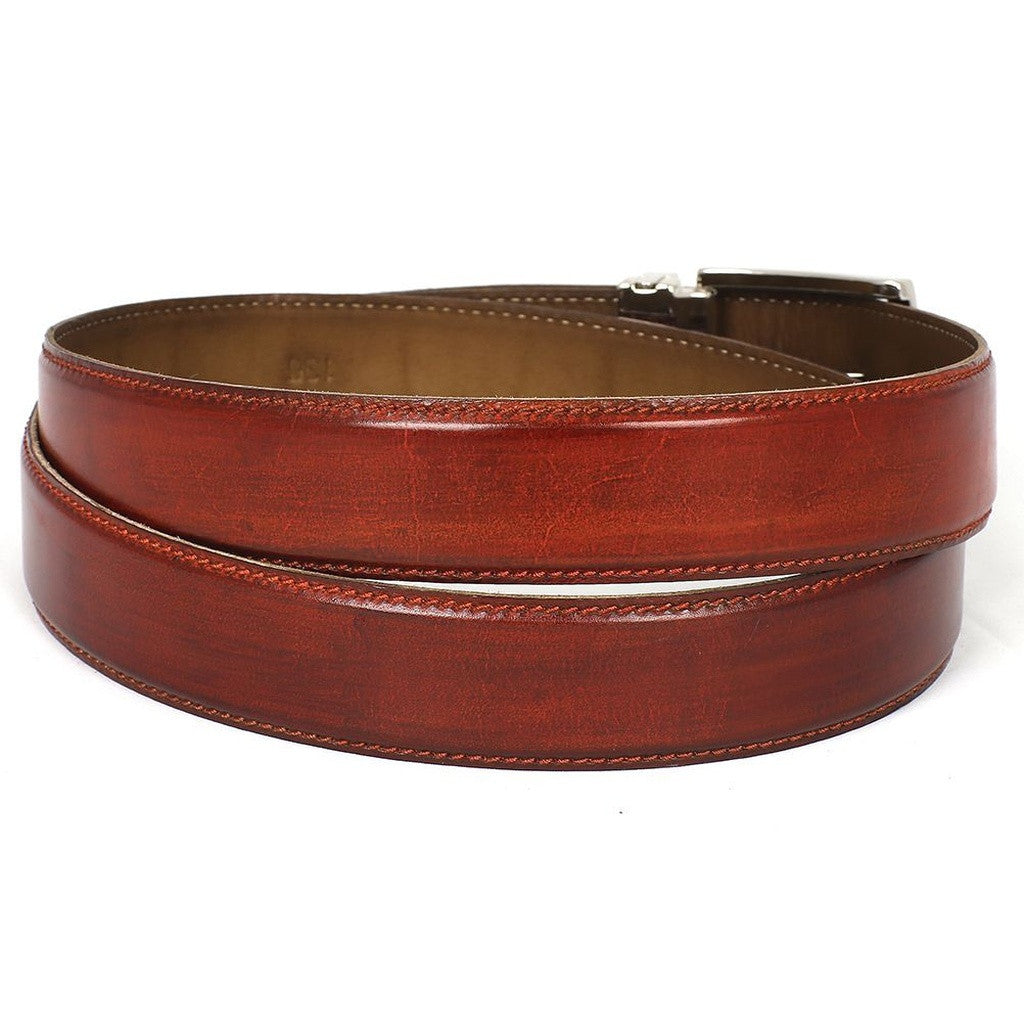 PAUL PARKMAN Men's Leather Belt Hand-Painted Reddish Brown (ID#B01-RDH)
